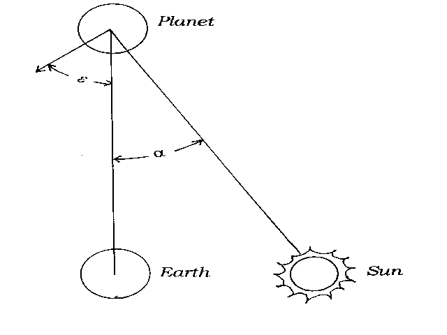 satellite e=PI/4, and the scattered light is zero. The angle a is