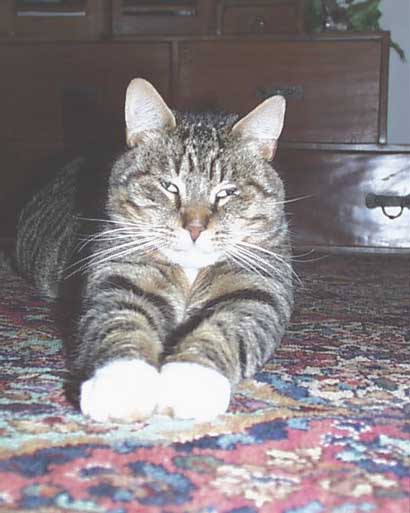 Well, everyone else seems to have a photo of their cat on a web page, so here are my two. This older one is very intellegent, but lacks social skills. Despite his formal appearance, he bites guests. I named him Oliver Heaviside. The other is a very lovable cat, but he leads a secret life at night that involves fighting with large mammals, perhaps even raccoons. His name is Dr. Jekyll.