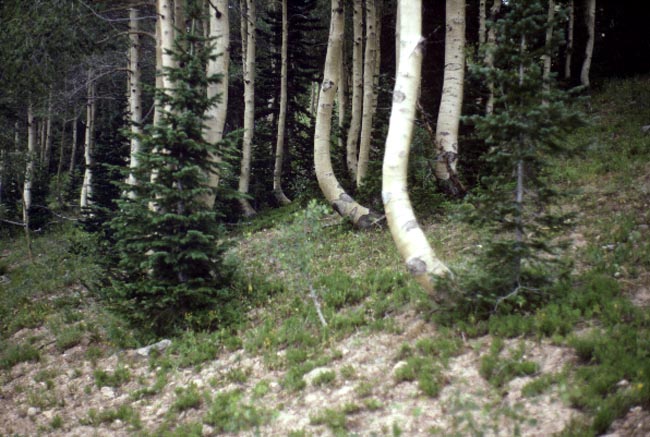 | Soil Creep Why do the trees have curved trunks? | Ice Spires What caused the weird ice spike to grow? | A fossil house Where is this place? Click on the image for a closer look. |